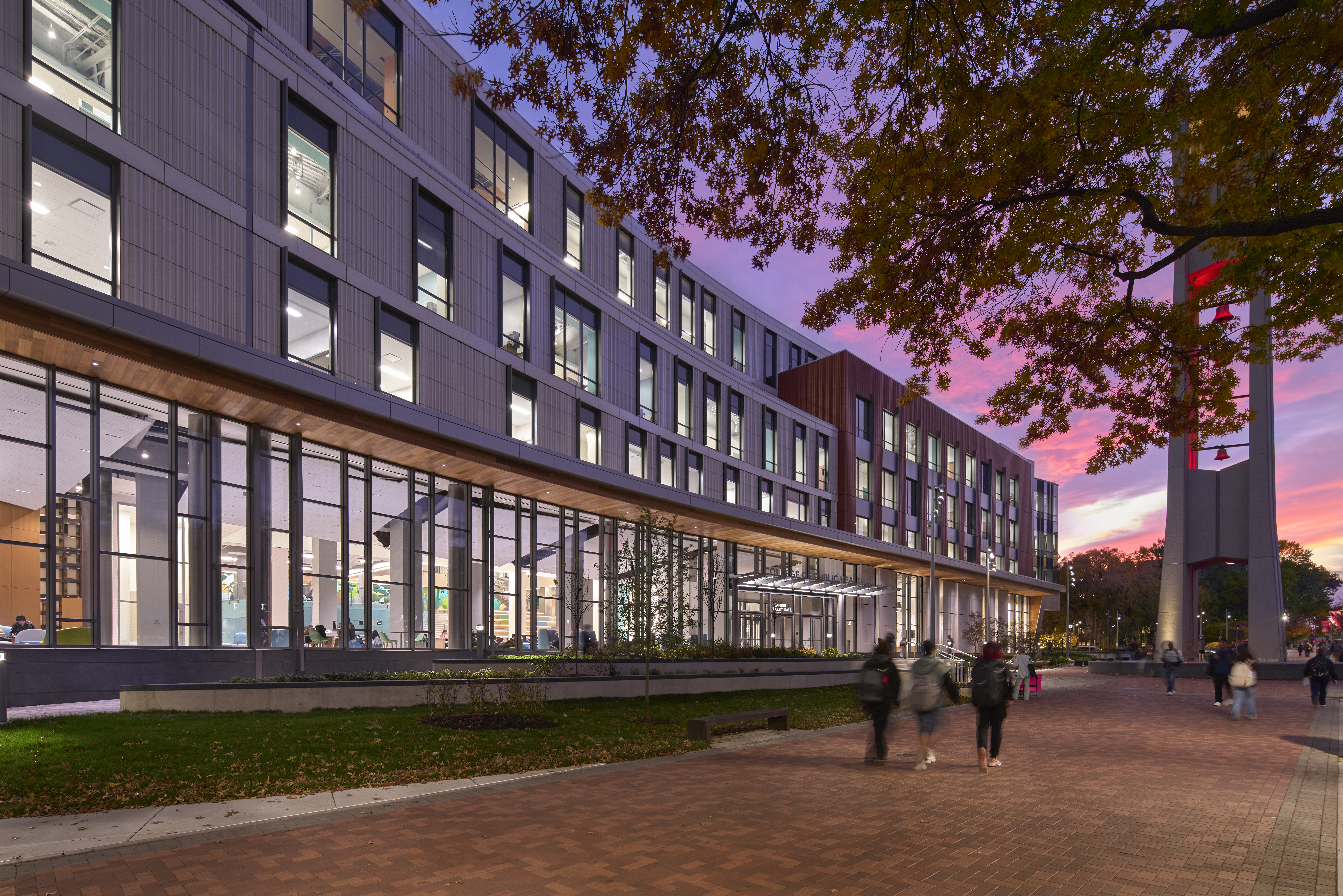 Leaving only the column and floor structure of the former Paley Hall, this project involved a re-imagining of a structure occupying one of the most prominent locations on Temple’s campus. It is located at the south end of the main gathering plaza in the heart of the university’s main activity node.